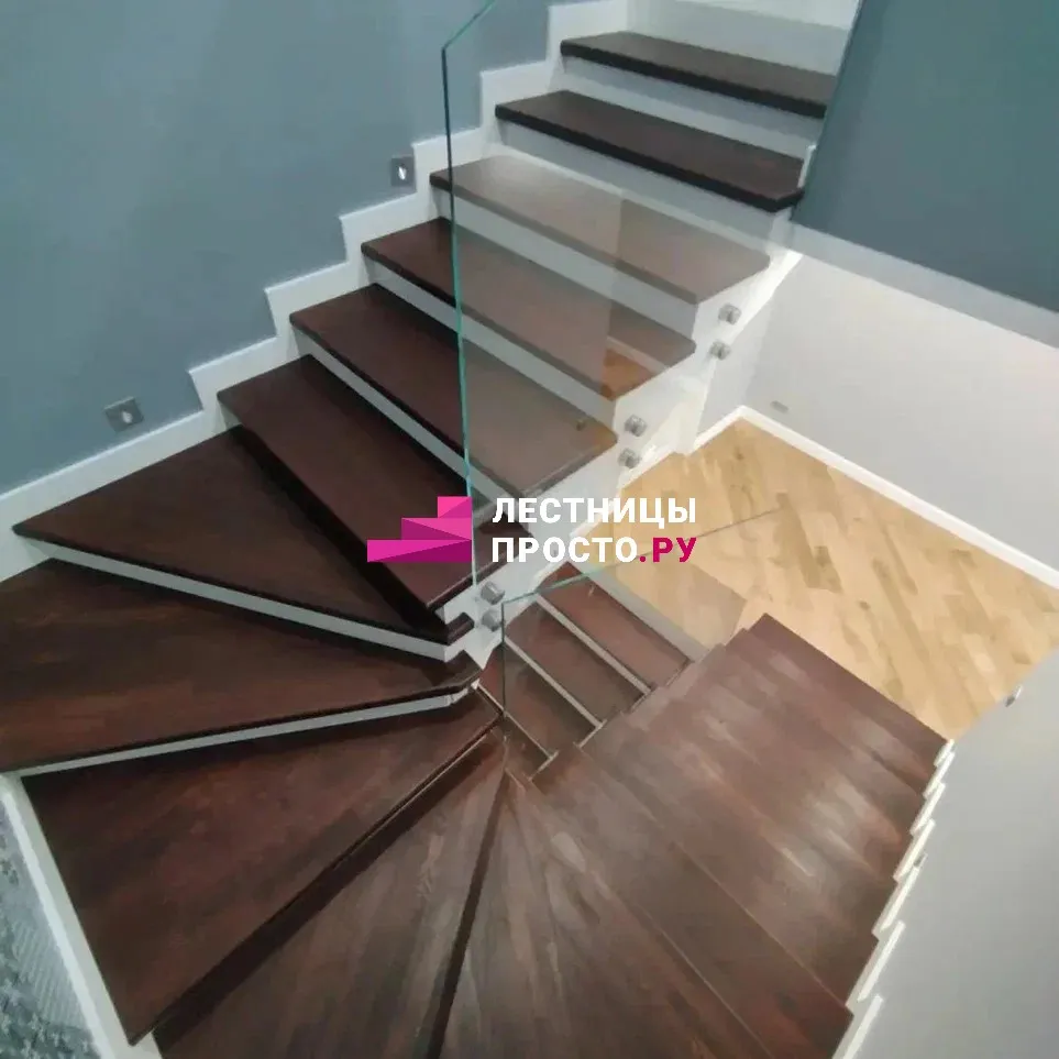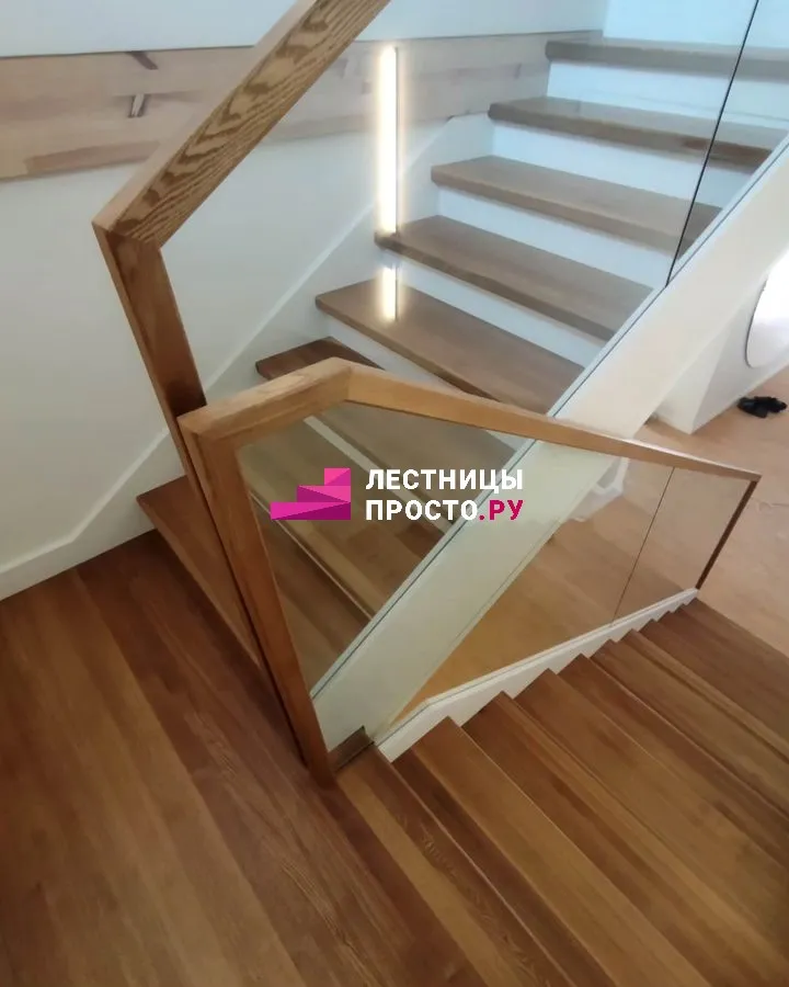 Отделка двухмаршевой бетонной лестницы деревом LP-1-44