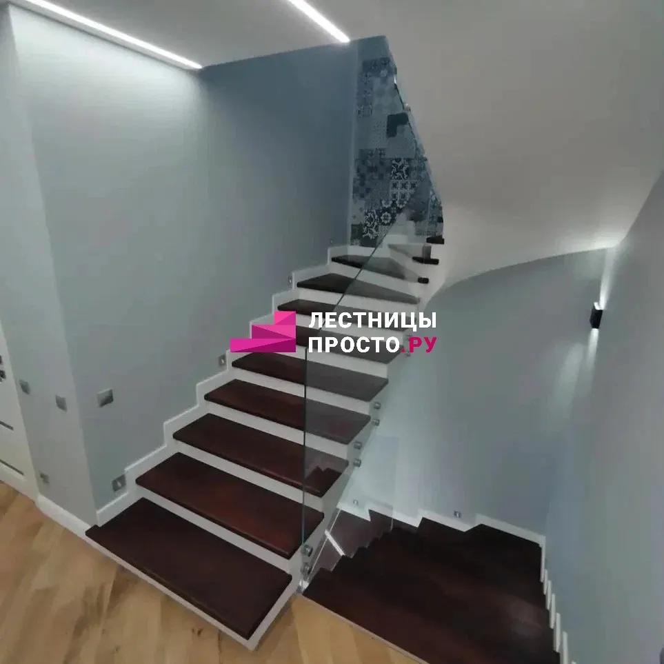 Современная лестница LP металлическая с ограждением тринити п-образная в частном доме